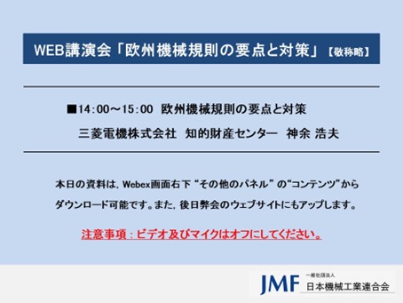 日機連WEB講演会「欧州機械規則の要点と対策」を開催